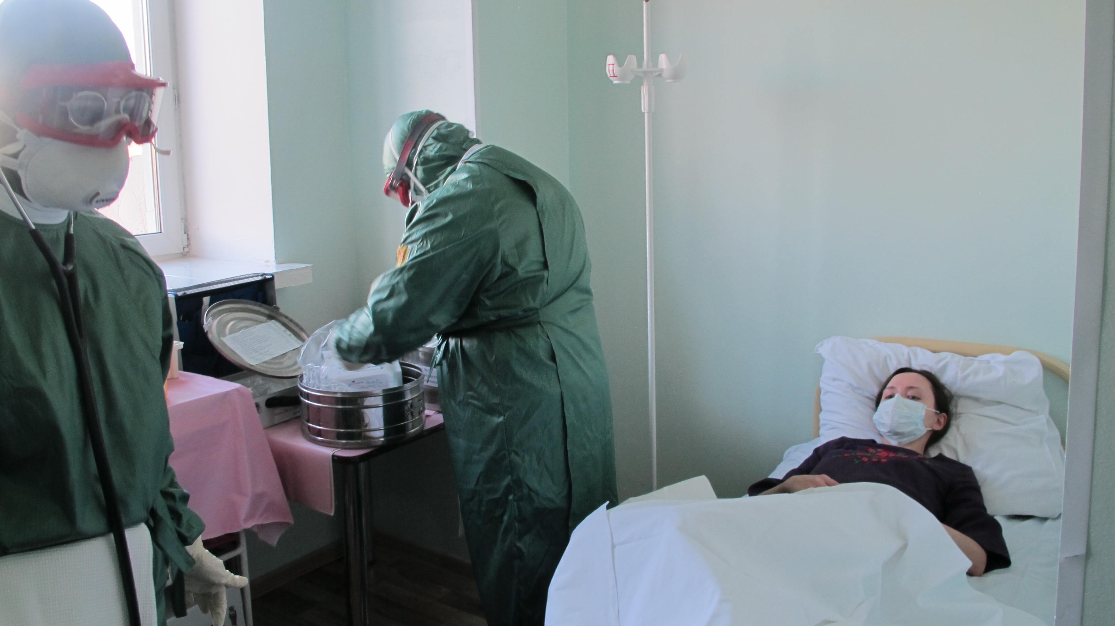 Условия приближены к реальным: в приемный покой краевой клинической инфекционной больницы обращается девушка, у которой нет направления, но есть жалобы на самочувствие. Она рассказывает, что пару дней назад прилетела из Вьетнама, где ее покусали мошки – и места укусов сильно зудятся. Кроме того, держится высокая температура, которую не сбивает жаропонижающее, есть редкий кашель, слабость. Оценив состояние пациентки, дежурный врач по телефону сообщает специальный код, обозначающий, что диагноз больной не исключает чуму. На всех этажах медучреждения начинается работа: блокируются двери, выставляются посты, отключается вентиляция, персонал отделения надевает специальные противочумные костюмы для сопровождения предполагаемого носителя чумы в изолированный бокс.